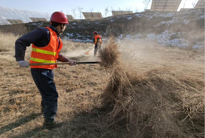 為進(jìn)一步保障電站安全運(yùn)營(yíng)環(huán)境,從源頭消除火災(zāi)隱患,11月1日—12月28日,臨洮電站開(kāi)展了為期五十八天的光伏區(qū)雜草治理工作,全面清除光伏區(qū)周邊雜草一百二十余萬(wàn)平方米、修剪樹(shù)木千余棵。