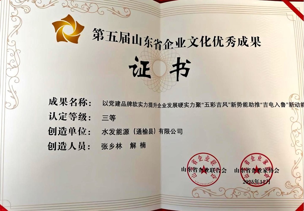 “五彩吉風”黨建品牌榮獲第五屆山東省企業(yè)文化優(yōu)秀成果三等獎