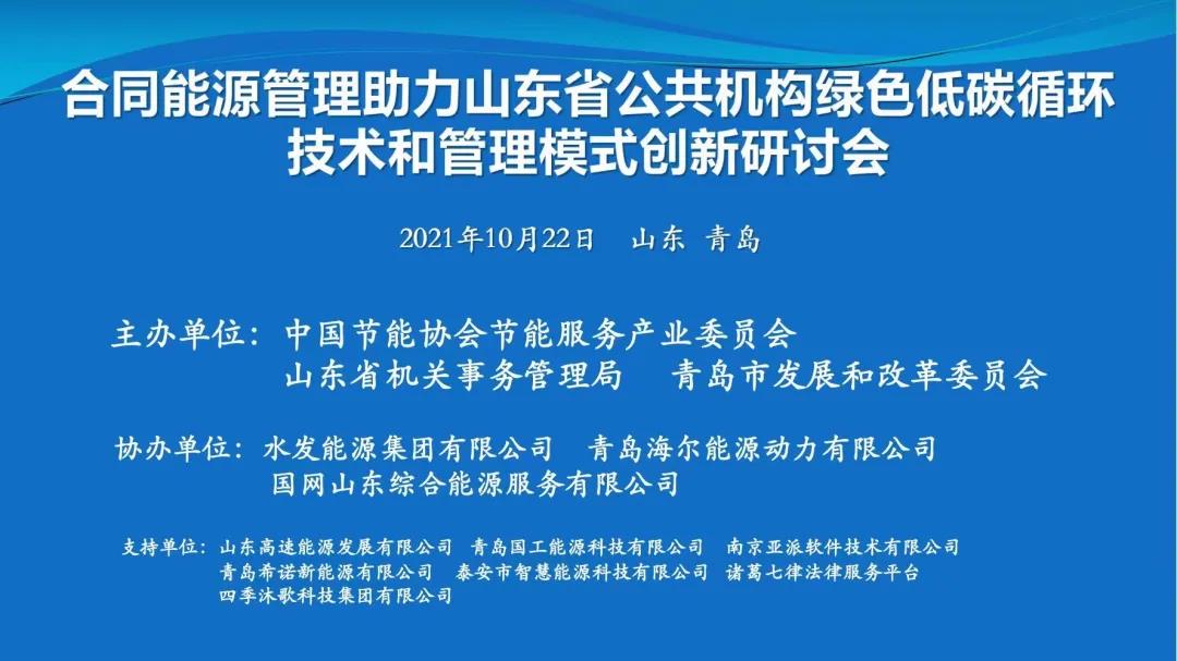 10月22日,“合同能源管理助力山東省公共機(jī)構(gòu)綠色低碳循環(huán)技術(shù)和管理模式創(chuàng)新研討會(huì)”在青島圓滿舉辦。水發(fā)能源集團(tuán)有限公司副總經(jīng)理周廣彥受邀出席會(huì)議。